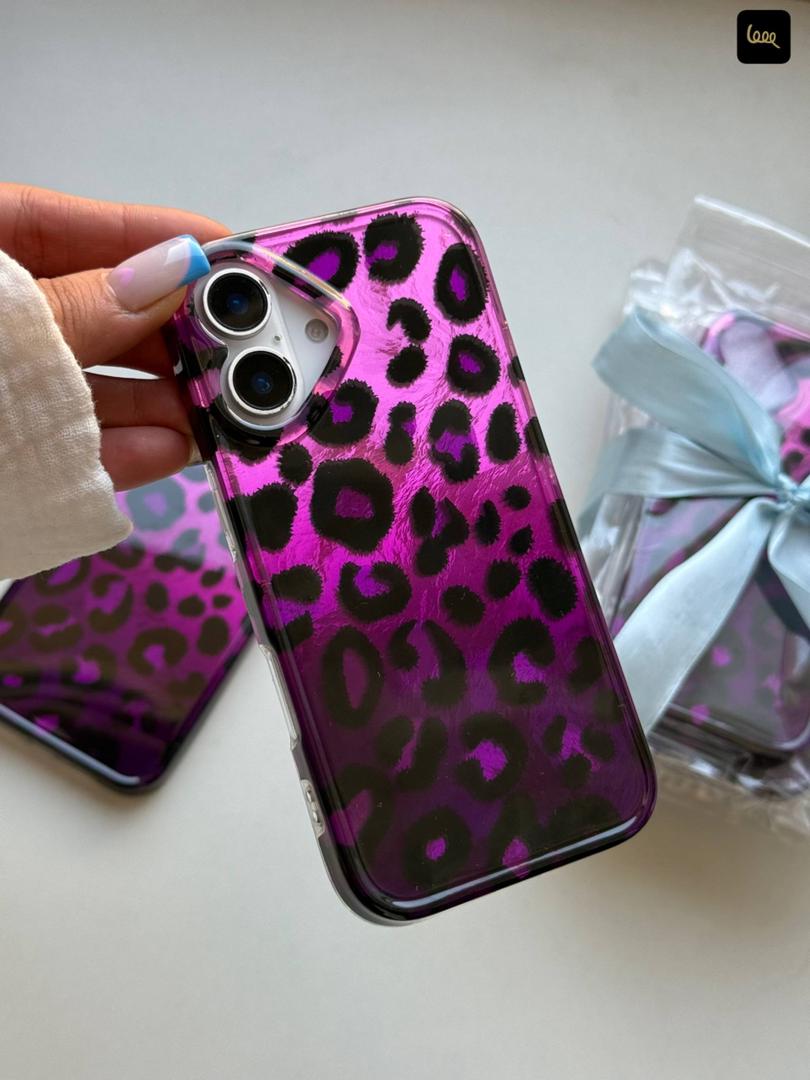 قاب پلنگی بنفش آیفون همراه اکسسوری