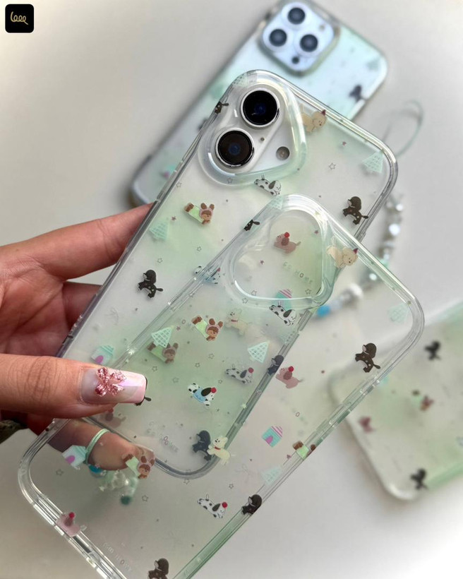 قاب شفاف iMD طرح سگای کوچولو مناسب آیفون 16، 15، 14 و 13 | همراه اکسسوری