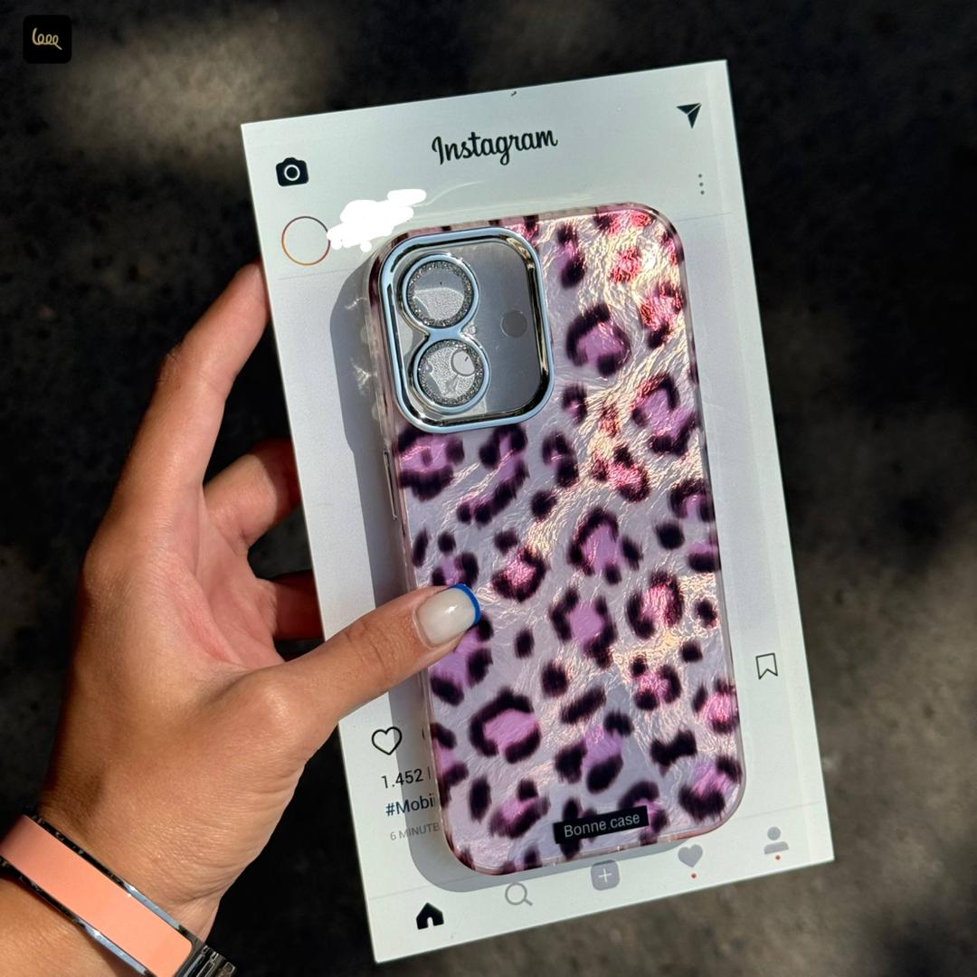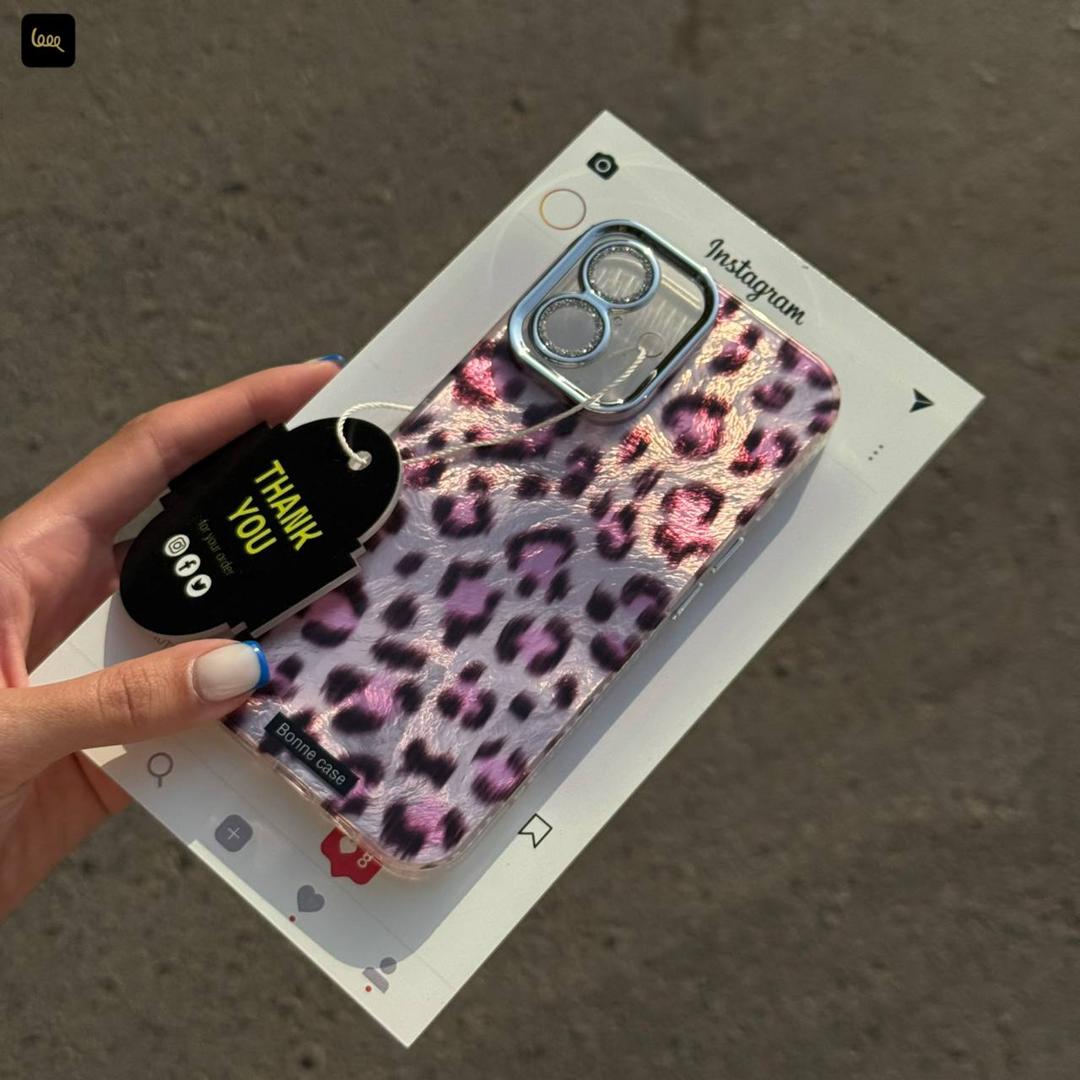 قاب طرحدار پلنگی براق برای آیفون (iPhone) مدلهای 16Promax تا 13 – همراه اکسسوری