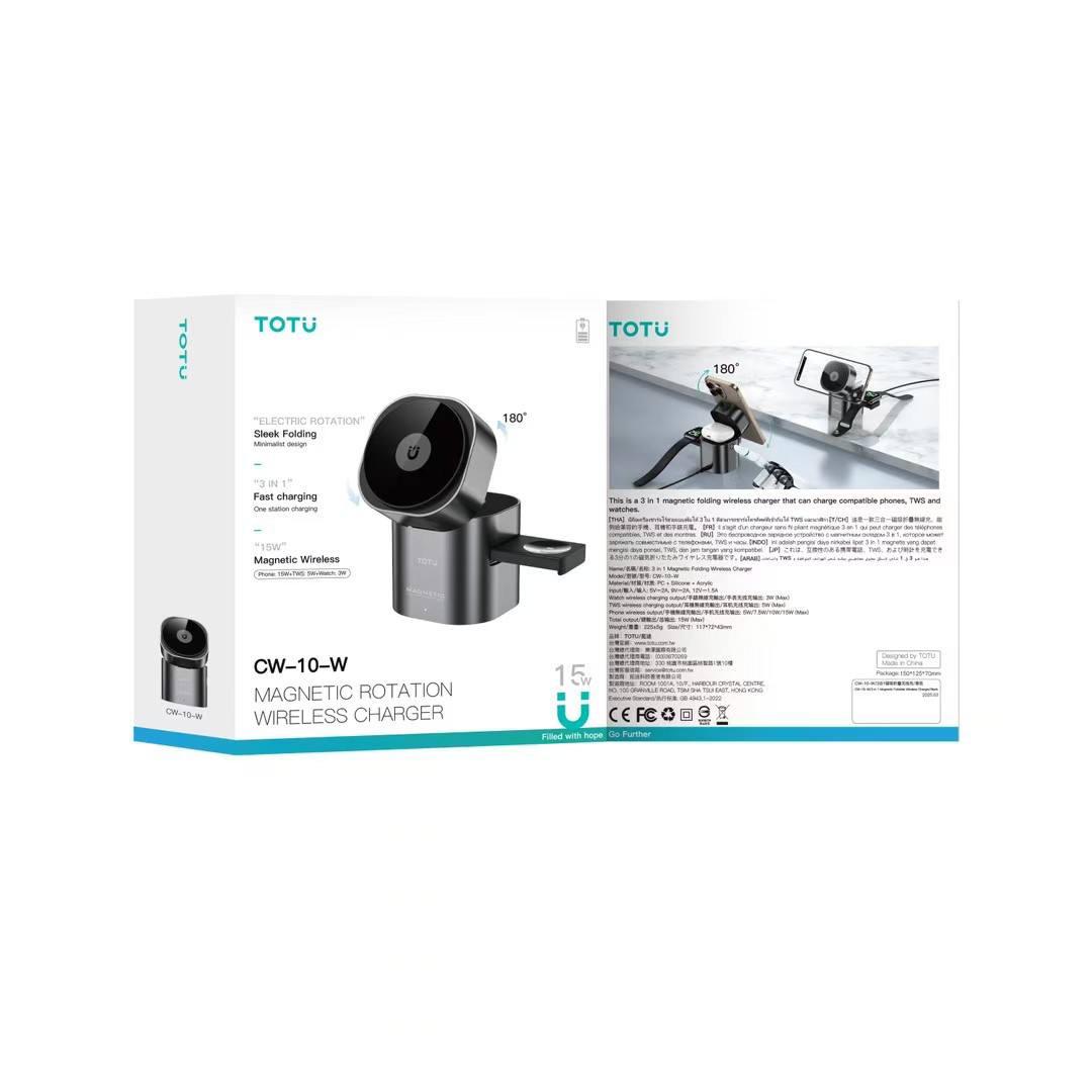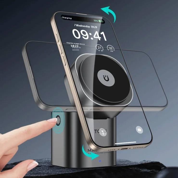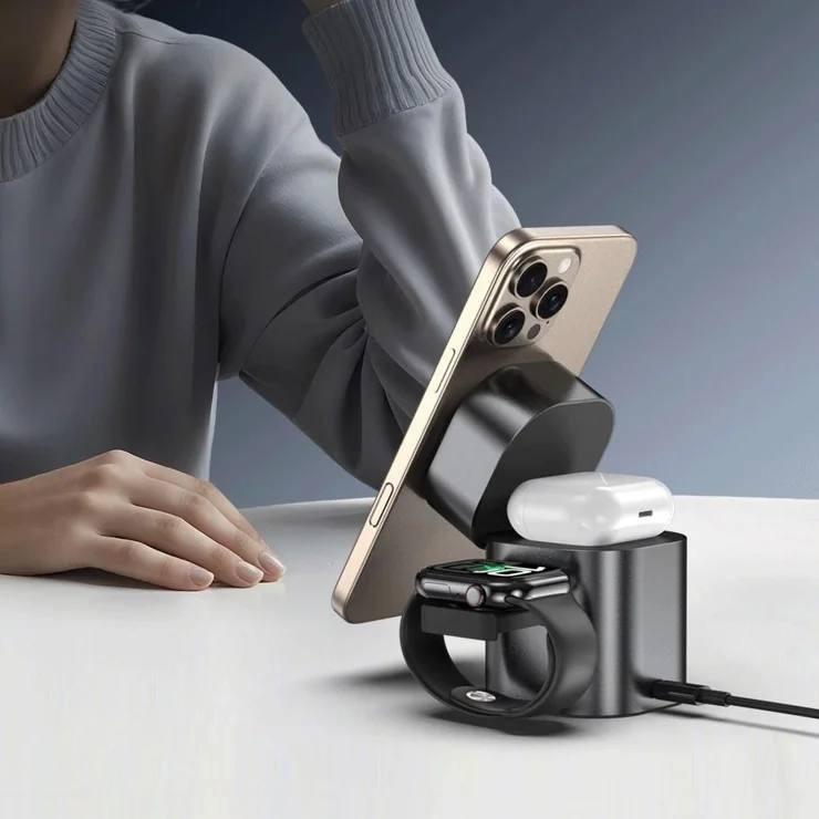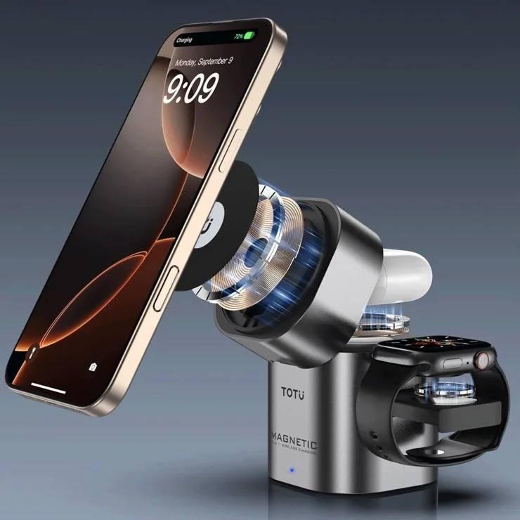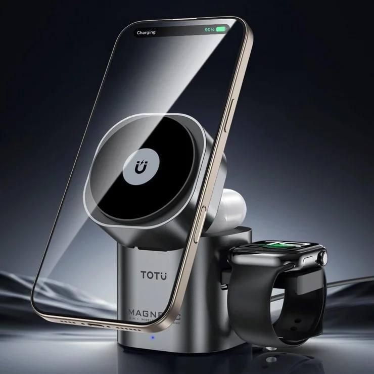 شارژر بیسیم TOTU مدل 3in1 یکی از کاملترین ایستگاههای شارژ برای کاربران دستگاههای هوشمند است و در بررسیهای انجام شده کیفیت ساخت بالا و عملکرد پایدار آن کاملاً قابل مشاهده است. قابلیت شارژ همزمان موبایل، اپل واچ و ایرپاد بدون نیاز به کابل اضافه، این مدل را از بسیاری از رقبای همرده متمایز میکند. بخش مگنتی موبایل قدرت اتصال خوبی دارد و گوشی را در جای خود کاملاً ثابت نگه میدارد. این موضوع بهویژه هنگام استفاده از گوشی در حالت استند بسیار مفید است.