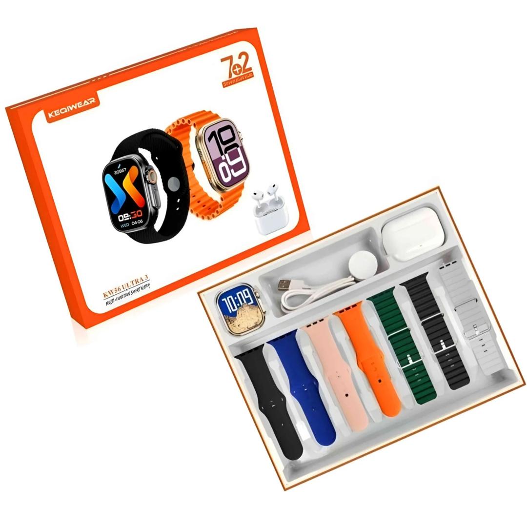 ساعت هوشمند KW56 Ultra 3 به همراه ایرپاد پرو – همراه اکسسوری یک پکیج ارزشمند برای کاربرانی است که به دنبال امکانات کامل با هزینه منطقی هستند. نمایشگر AMOLED بزرگ و بدون حاشیه، کیفیت ساخت مناسب و رابط کاربری روان از نقاط قوت این محصول محسوب میشود.