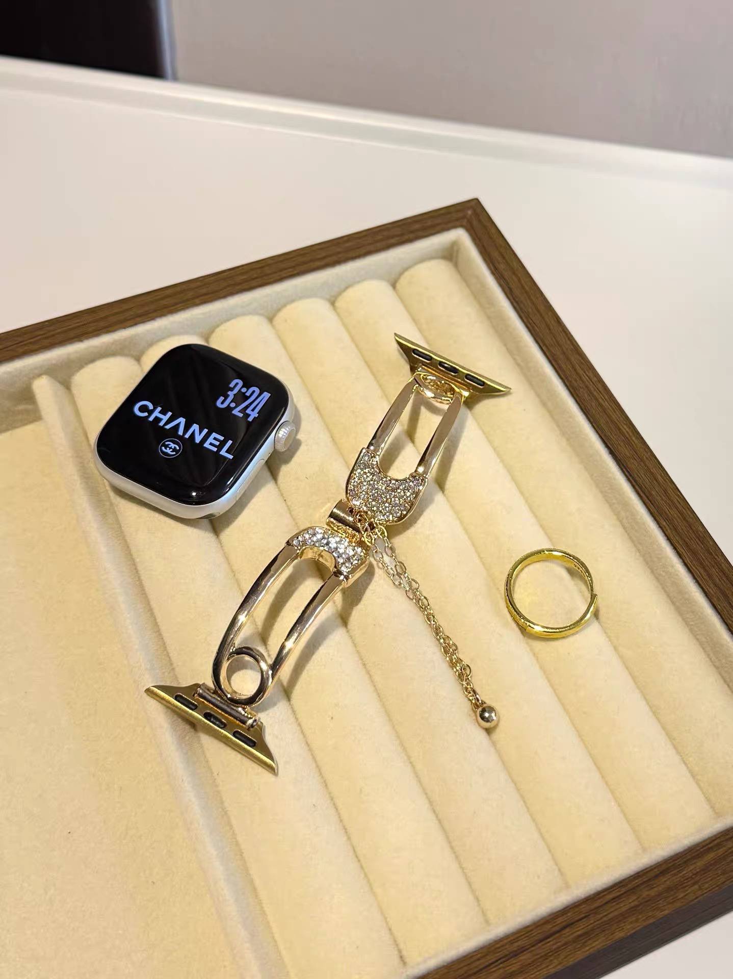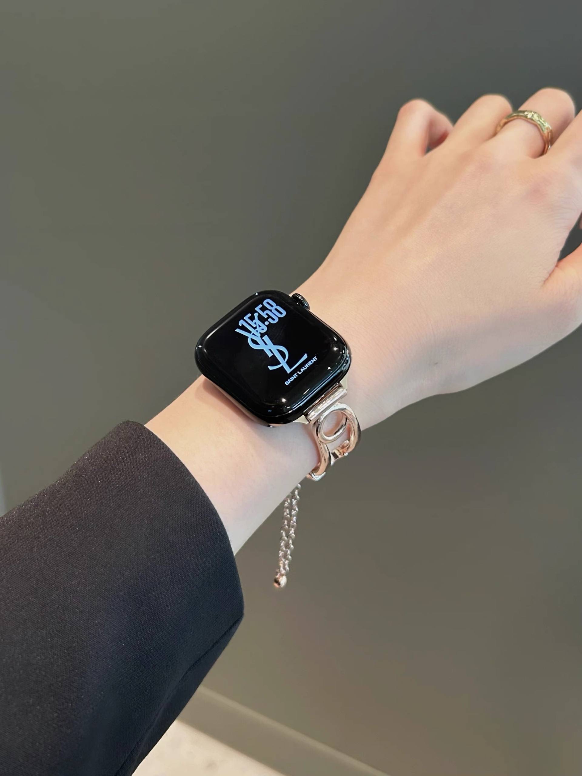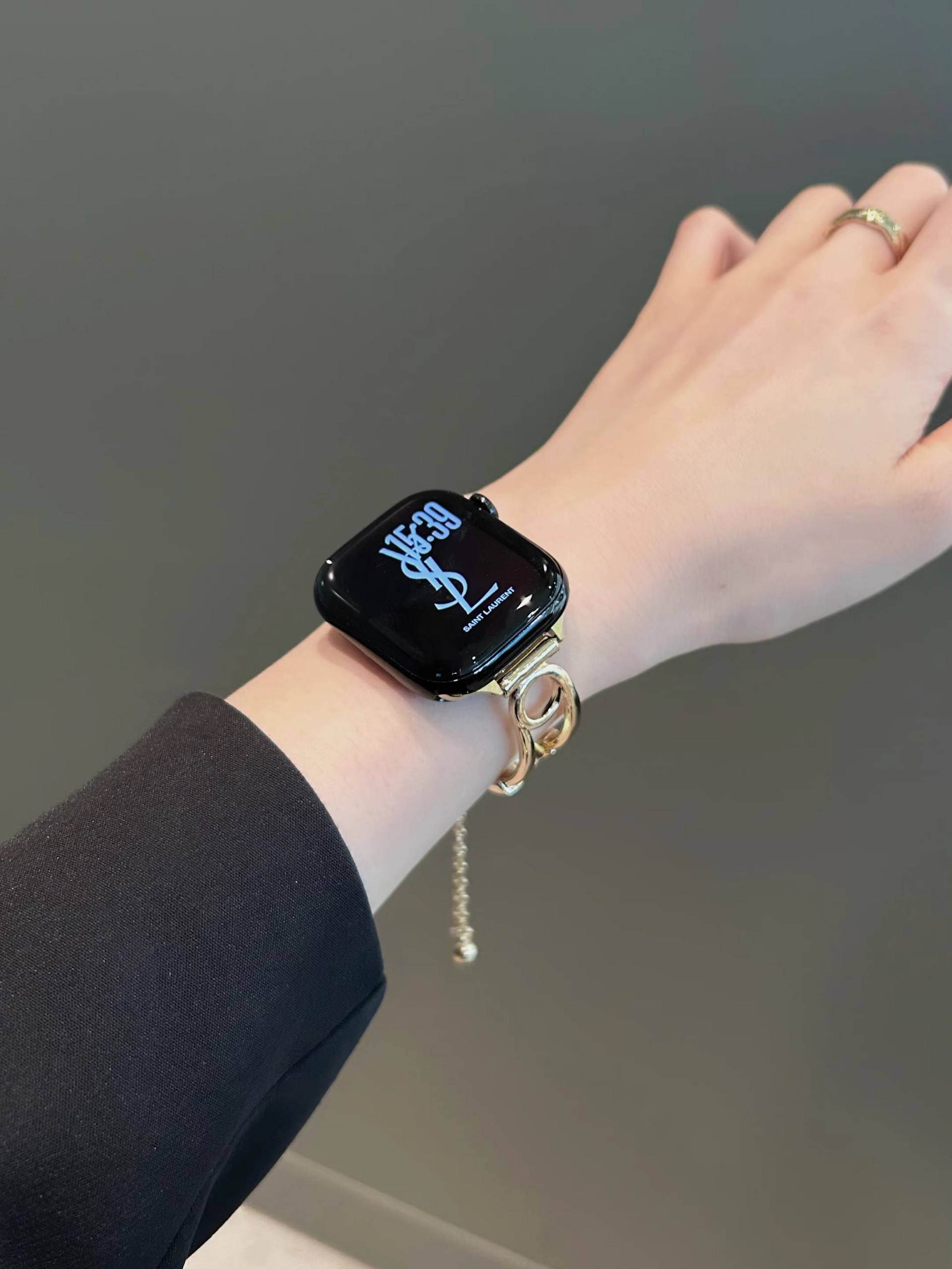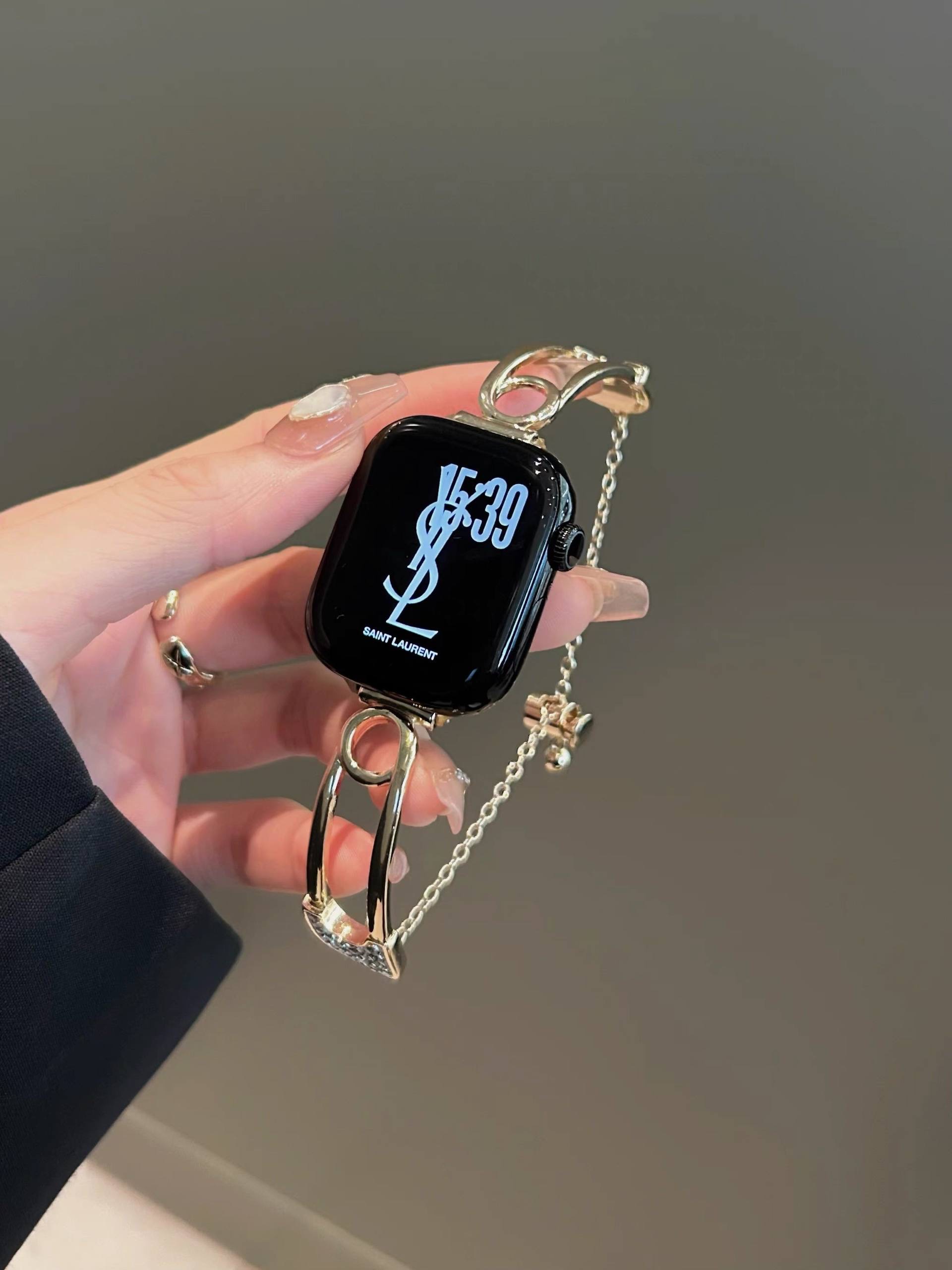 بند اپل واچ طرح سنجاق مد شده نگین دار همراه اکسسوری از نظر طراحی ظاهری متفاوت با بندهای معمولی ارائه می دهد و برای کاربرانی که به دنبال جلوه بصری خاص هستند جذابیت دارد. استفاده از نگین های ریز باعث افزایش جلوه تزیینی شده و در نور محیط جلوه درخشان ایجاد می کند.