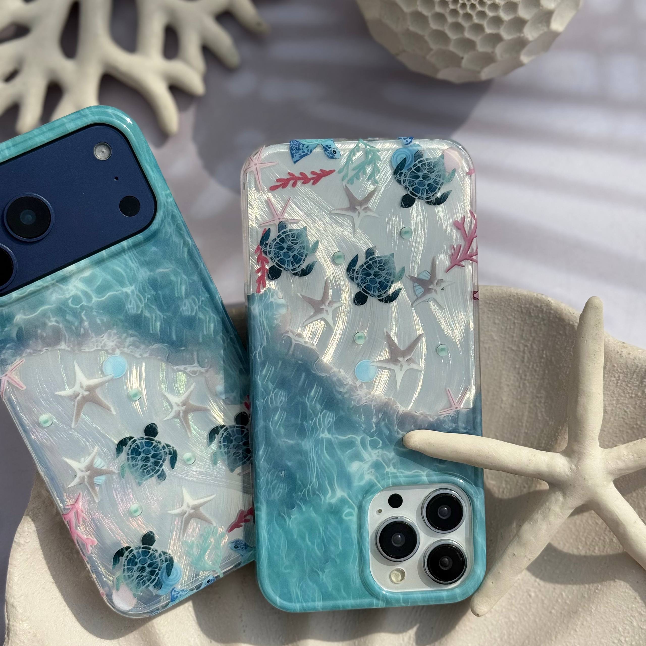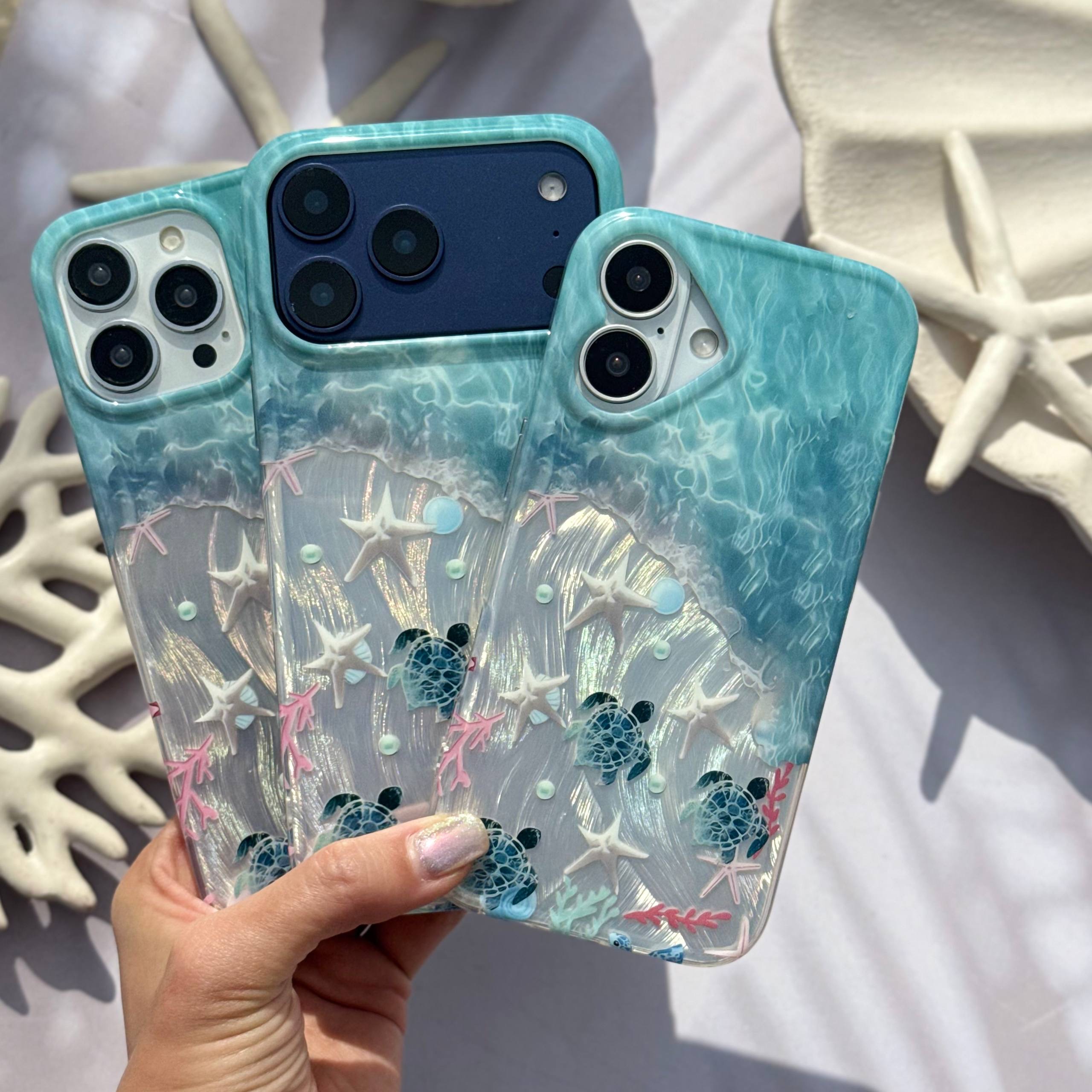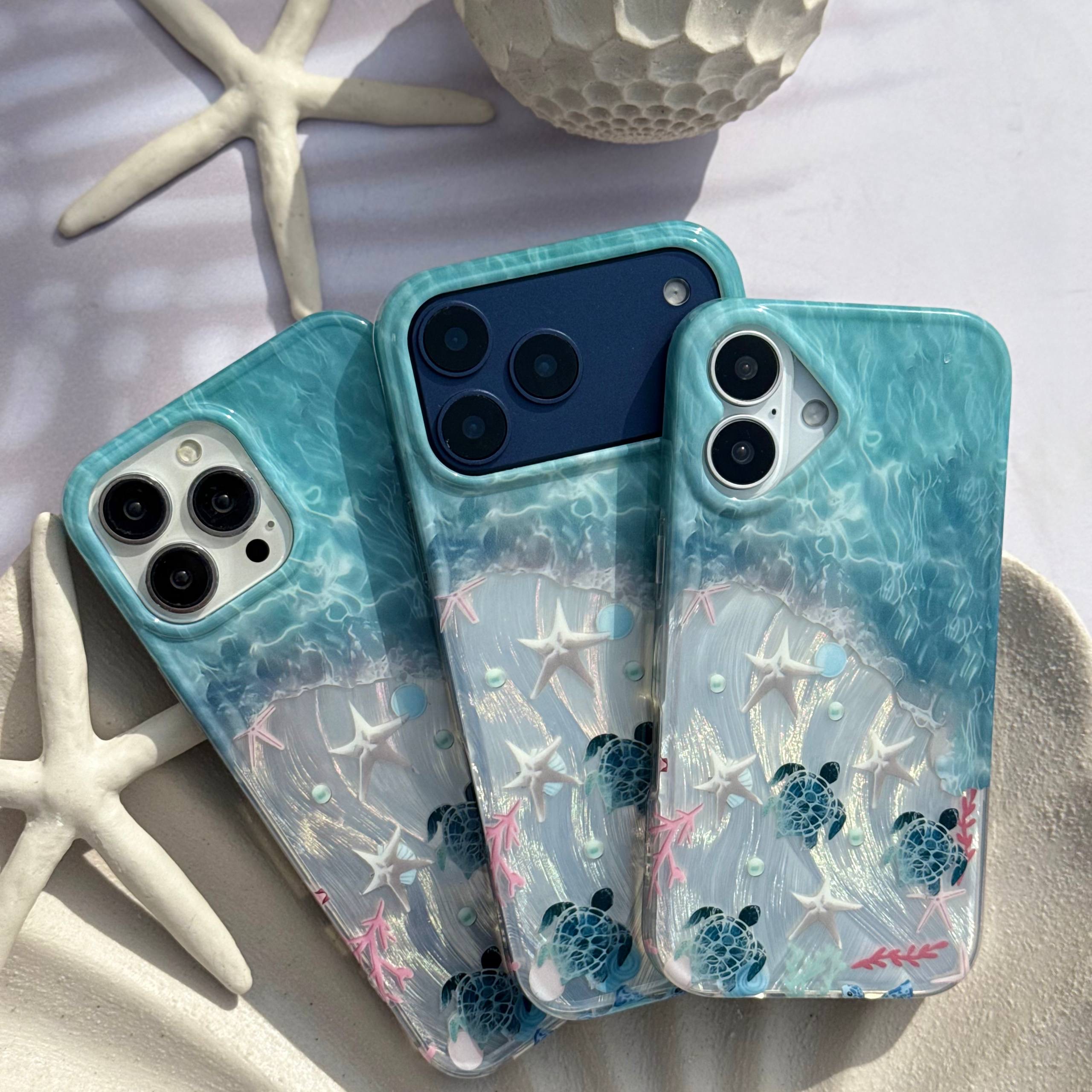 قاب IMD طرح ساحل و ستاره دریایی آیفون همراه اکسسوری از نظر طراحی ظاهری در دسته قاب های فانتزی و خاص قرار می گیرد. استفاده از عناصر دریایی مانند ستاره دریایی و لاکپشت دریایی باعث شده این قاب حس آرامش و طبیعت را القا کند و برای افرادی که به تم های ساحلی علاقه دارند انتخابی بسیار جذاب باشد. تکنولوژی IMD یکی از نقاط قوت اصلی این محصول است زیرا طرح در لایه داخلی تثبیت شده و در برابر سایش مقاومت بالایی دارد.